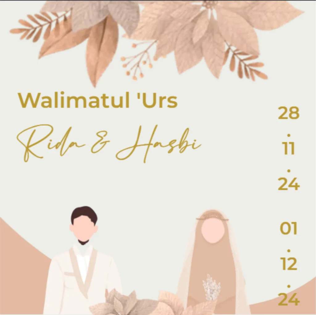 Walimatul ‘Urs Rida & Hasbi 28.11.24 01.12.24 Kepada Yth : Bapak/Ibu/Saudara/i Di Tempat Buka Undangan بِسْــــمِ اﷲِالرَّحْمَنِ اارَّحِيم ” Dan di antara tanda-tanda kekuasaan-Nya diciptakan-Nya untukmu pasangan hidup dari jenismu sendiri supaya kamu dapat ketenangan hati dan dijadikannya kasih sayang di antara kamu. Sesungguhnya yang demikian menjadi tanda-tanda kebesaran-Nya bagi orang-orang yang berpikir. ” – […]