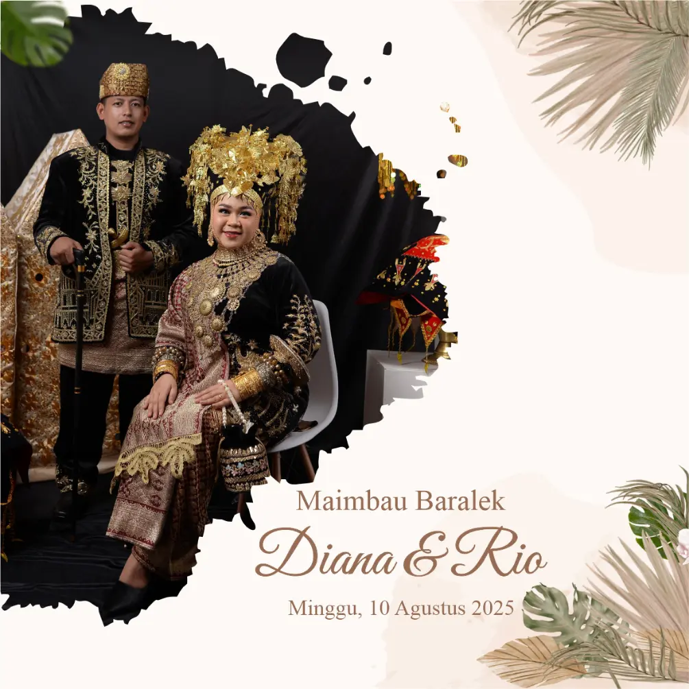 Maimbau Baralek Ayu & Deni Kami akan menikah, kami ingin anda menjadi bagian dari hari bahagia kami Resepsi SABTU, 02 AGUSTUS 2025 00Hari 00Jam 00Menit 00Detik Ar-Rum 21 وَمِنْ آيَاتِهِ أَنْ خَلَقَ لَكُمْ مِنْ أَنْفُسِكُمْ أَزْوَاجًا لِتَسْكُنُوا إِلَيْهَا وَجَعَلَ بَيْنَكُمْ مَوَدَّةً وَرَحْمَةً إِنَّ فِي ذَلِكَ لَآيَاتٍ لِقَوْمٍ يَتَفَكَّرُونَ “Dan Di Antara Tanda-Tanda (Kebesaran)-Nya Ialah Dia […]