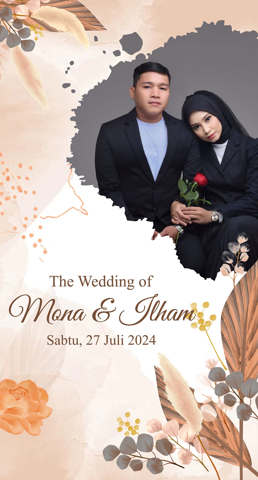 Dengan memohon rahmat dan ridho Allah Subhanahu Wa Ta'ala, Kami mengundang Bapak/Ibu/Saudara/i, untuk menghadiri Resepsi Pernikahan kami. yang Insya Allah akan dilaksanakan pada :